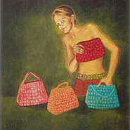 Parallel zur Mutter- Kind Serie begann ich, mich für das Bild der Frau in der Kirche zu interessieren: die Madonna. Es veränderte sich im Laufe der Jahrhunderte. Von einer machtvollen, rot gekleideten Himmelsherrscherin blieb eine blasse, schmale Gestalt. In meinen Werken arbeite ich daran, das gängige Bild zu hinterfragen und ihm andere Aspekte entgegen zu setzen.