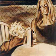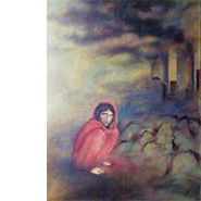 Der Terroranschlag am 11. September gab mir den Anstoß, mich mit dem Leiden unschuldiger Menschen zu beschäftigen. Die zugängliche öffentliche Weltmeinung wurde mit bewusst fingierten Informationen manipuliert: es wurde die "Achse des Bösen" definiert. Das Mädchen oder die Kinder zwischen Trümmern werden zum Leiden verurteilt - der "große Bruder" verschlingt seine ehemaligen Handlanger. Saturn frisst seine Kinder, nach Goya. Mein bisher letztes Bild dieser Serie soll trotz Allem einen optimistischen Akzent setzten und den Betrachterblick auf Positives lenken.